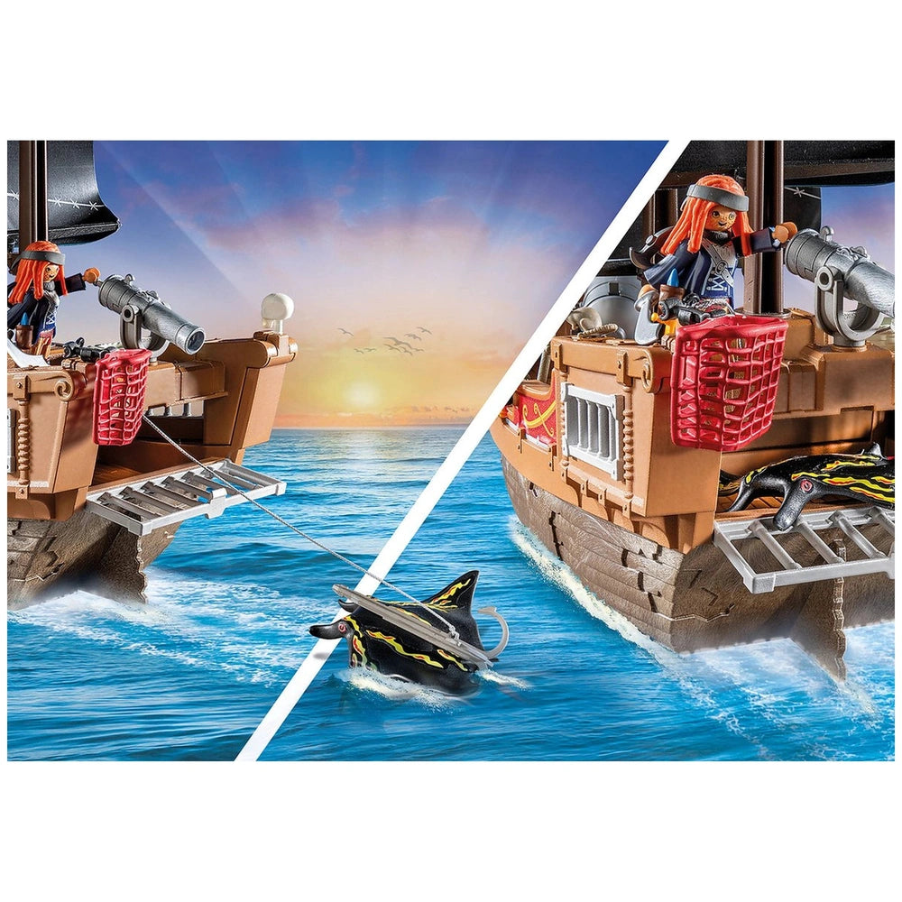 Safety and durability are paramount in the design of the Playmobil Pirates Large Pirate Ship. The floating feature ensures that the ship remains buoyant, even when filled with water, allowing for exciting water play without the risk of sinking. This thoughtful design element encourages outdoor play and exploration, making it a versatile toy that can be enjoyed in various settings, whether in the playroom or at the beach.