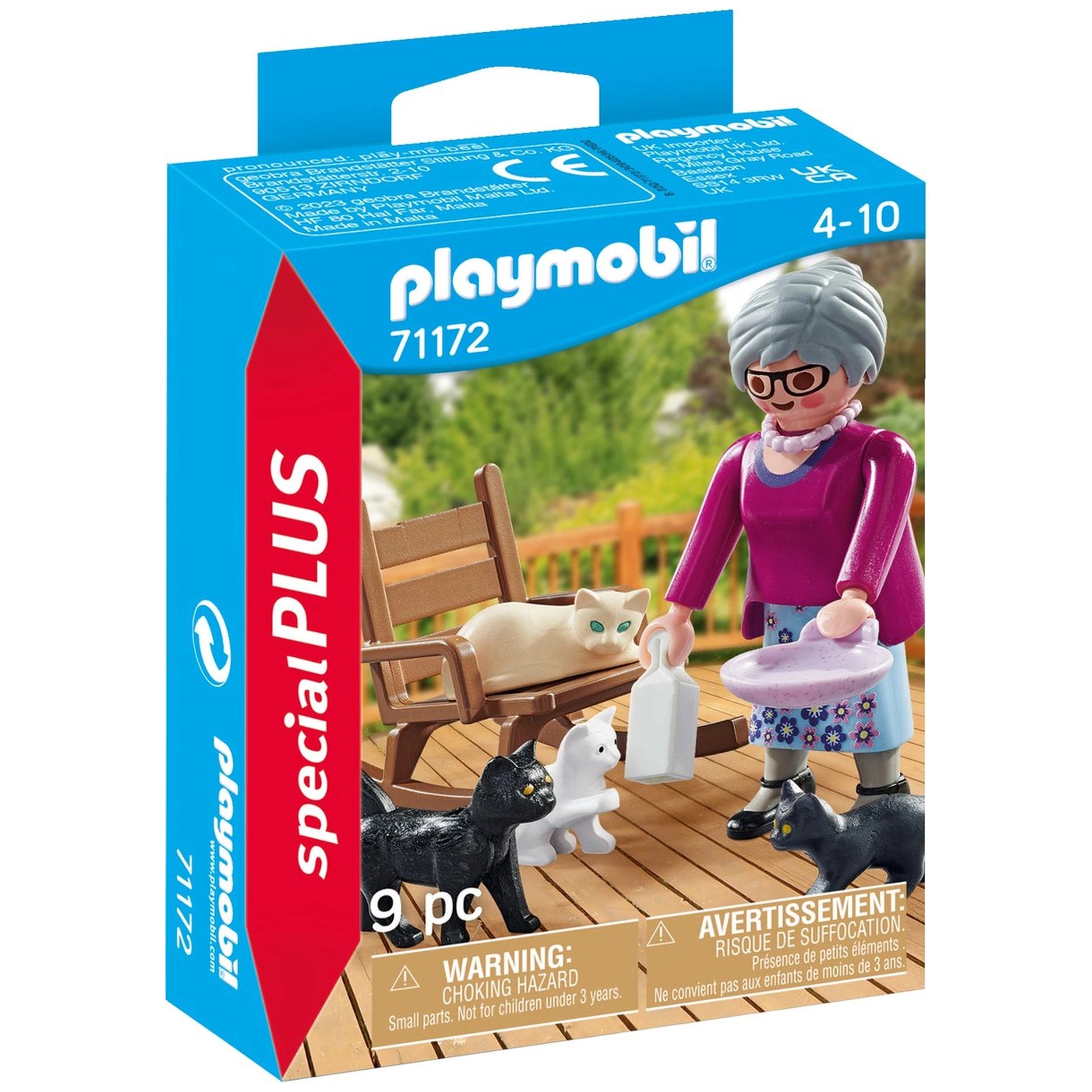 Playmobil Specials Grandma With Cats - 71172 is more than just a toy; it’s an opportunity for children to explore themes of love and care in a playful environment. The set includes a comfortable rocking chair where the grandmother can relax while her cats enjoy their time with her. This interactive element invites children to engage in role-playing scenarios, allowing them to express their creativity and develop social skills as they play with friends or family.