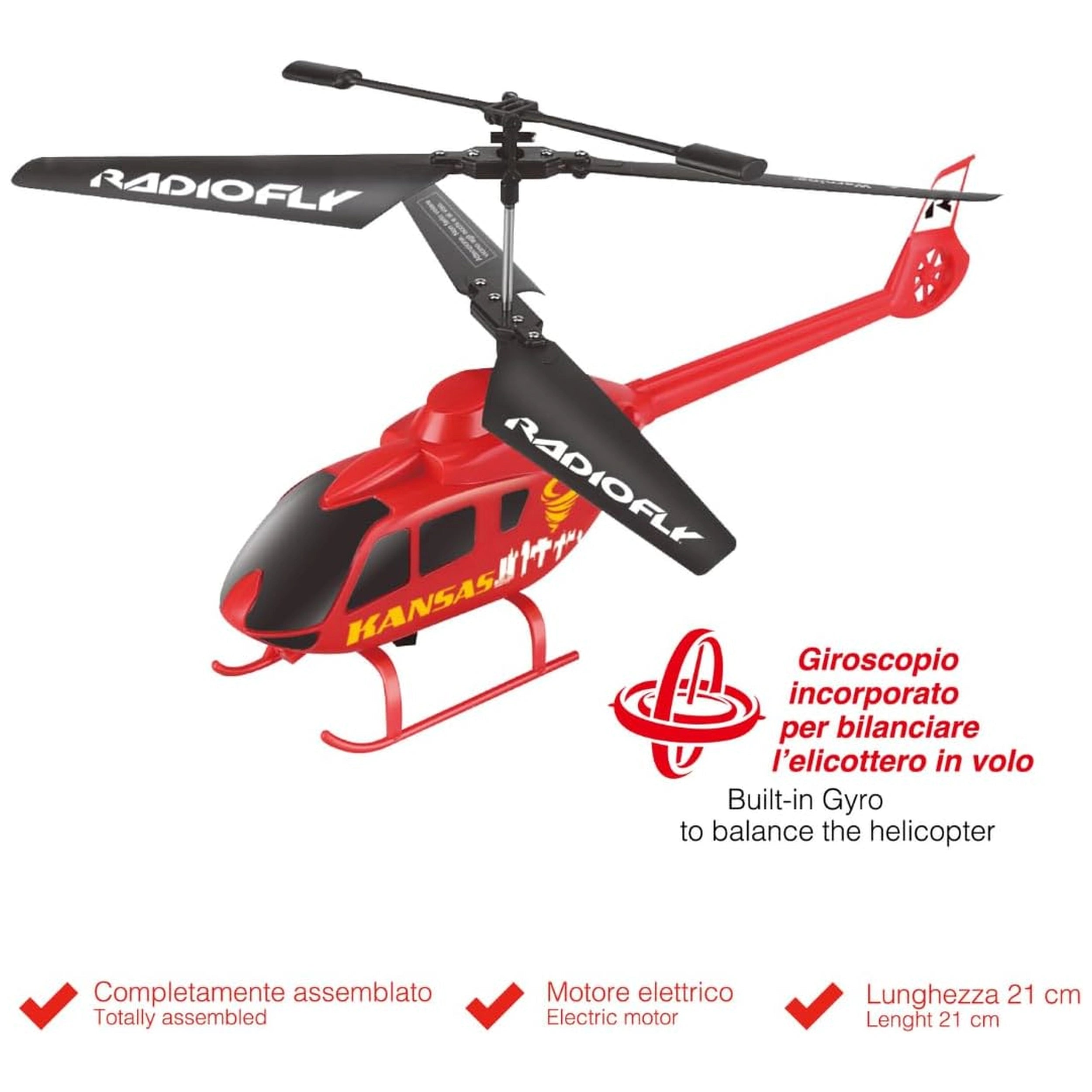 Introducing the ODS - Radiofly Kansas RC Helicopter, a state-of-the-art remote-controlled helicopter designed for enthusiasts of all ages. This innovative play vehicle combines advanced technology with user-friendly features, making it an ideal choice for both beginners and seasoned pilots. With its sleek design and impressive capabilities, the Radiofly Kansas is not just a toy; it's an experience that brings the thrill of flight right into your hands.