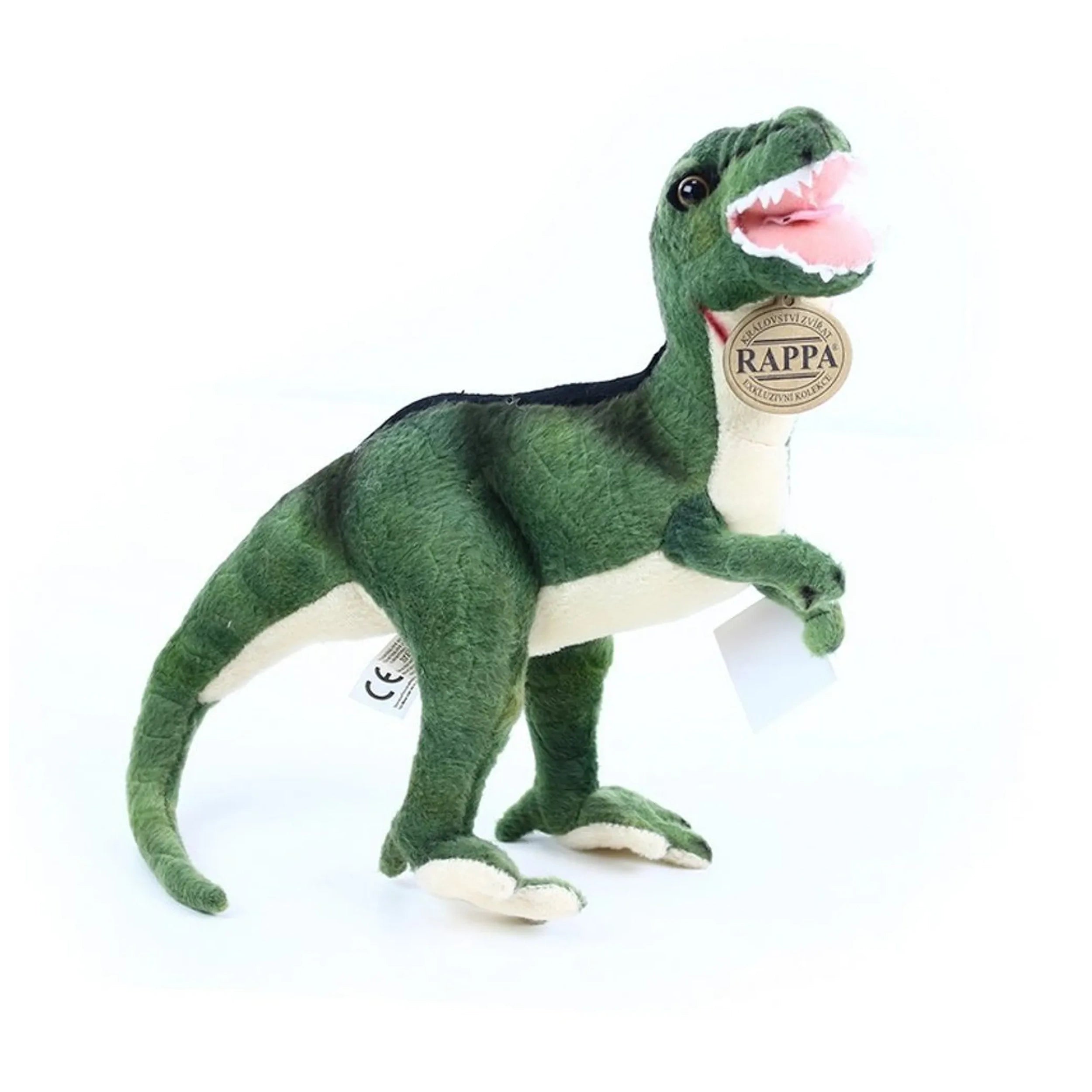 Introducing the Rappa T-Rex Dinosaur Plush, a delightful and eco-friendly companion for dinosaur enthusiasts of all ages. Measuring approximately 23 cm, this charming plush toy is crafted from high-quality materials, ensuring a soft and huggable experience for children and adults alike. The T-Rex design captures the imagination, making it a perfect gift for birthdays, holidays, or simply as a surprise for someone special.