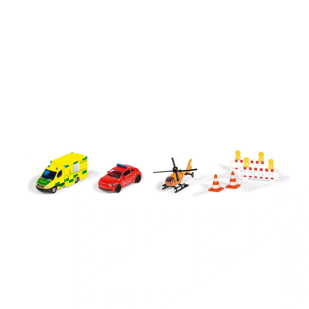 Introducing the Siku Gift Set Rescue - Play Vehicles, an exceptional collection designed to ignite the imagination of young emergency service enthusiasts. This meticulously crafted set brings the thrilling world of rescue operations to life, allowing children to engage in imaginative play while learning about the vital role of emergency services. With its realistic details and high-quality construction, this gift set is perfect for both playtime and educational purposes.