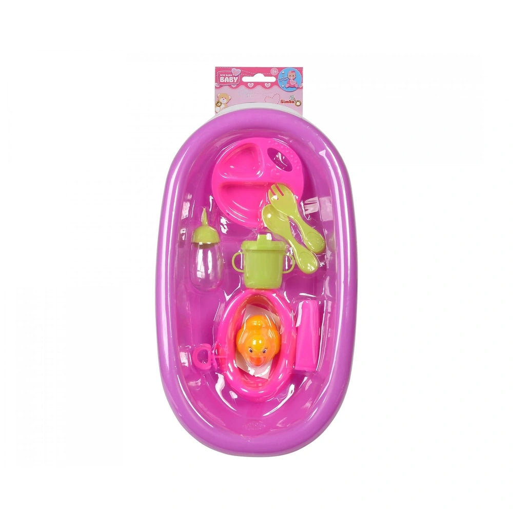 The Simba New Born Baby Bathtub comes complete with an array of accessories that enhance the play experience. Included are a playful bath duck, a potty, a bottle, a cup, a plate, a spoon, and a dummy, providing everything a child needs to engage in creative role-playing scenarios. These accessories not only add to the fun but also help children develop essential life skills such as responsibility and empathy as they care for their doll.