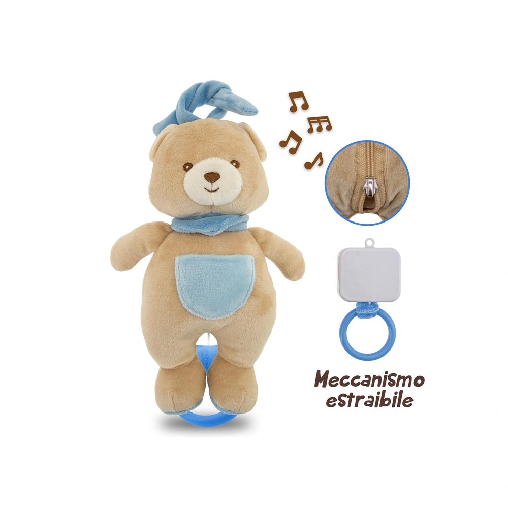 Teorema presents the GoGo Musical Teddy Bear, a delightful plush companion designed for infants aged 0 months and up, within the category of stuffed animals. This 25cm bear serves as a gentle lullaby companion, promoting peaceful sleep and sensory discovery for your little one.