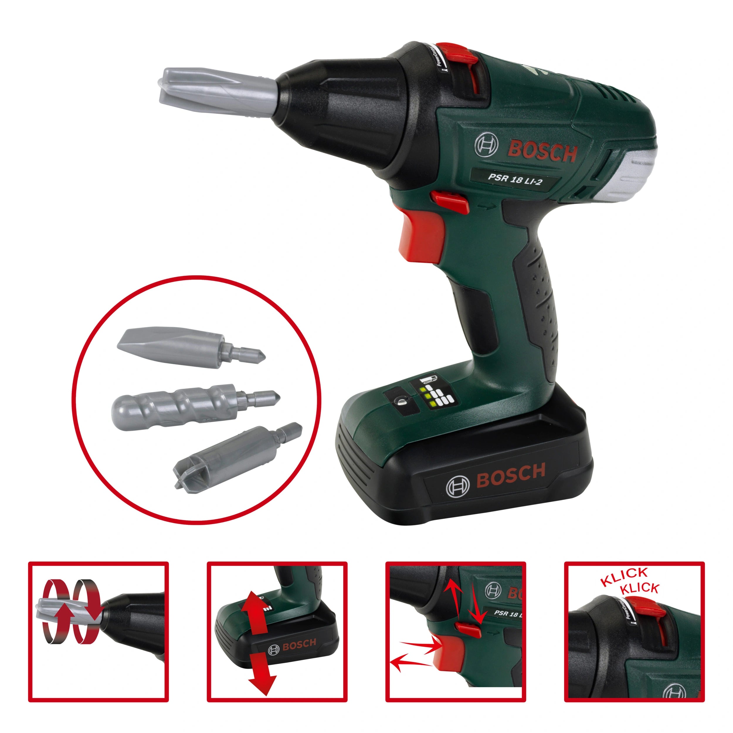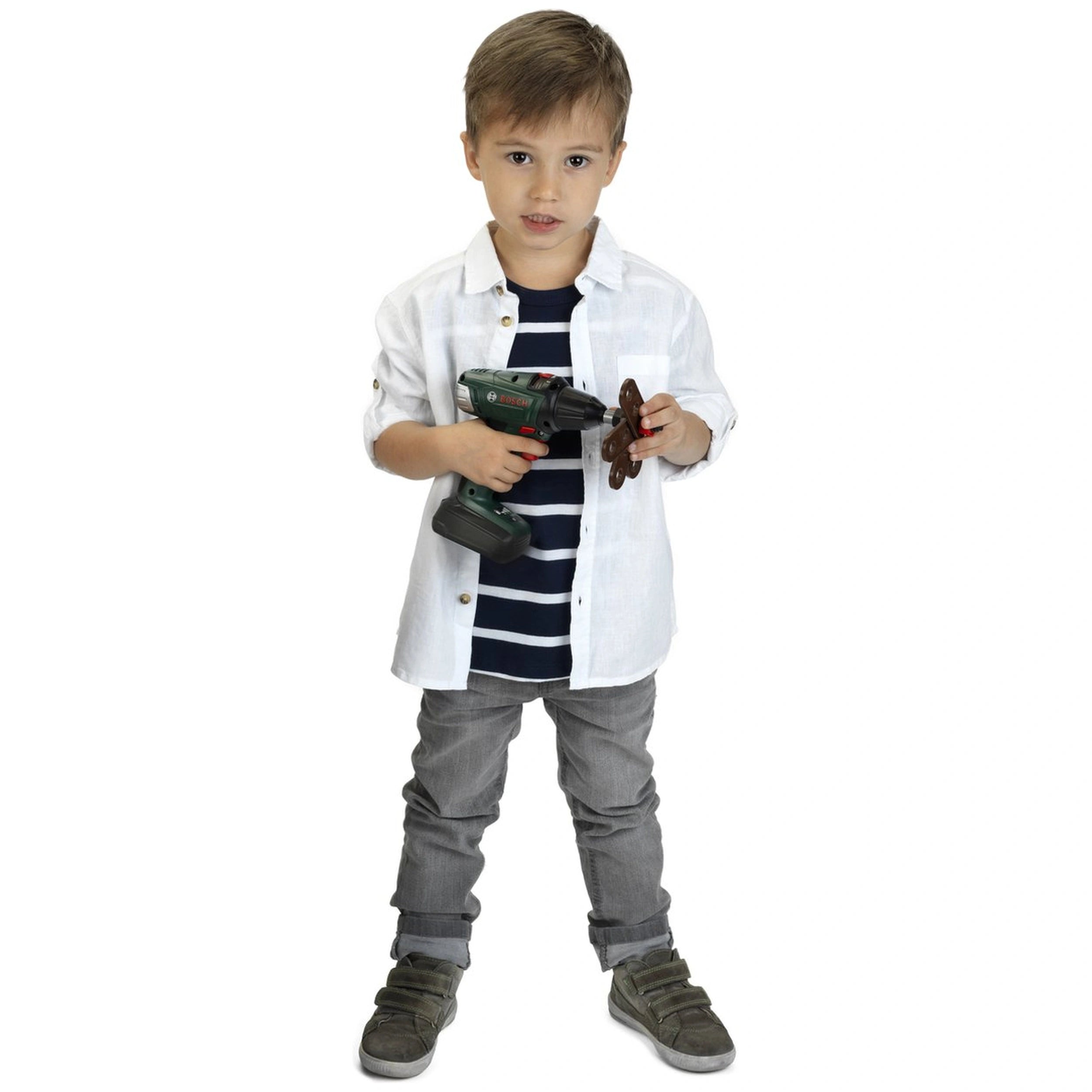 The Theo Klein Bosch Cordless Drill/Screwdriver features child-friendly functions that mirror the real-life tool, ensuring that your child can engage in realistic play without compromising safety. With its rotating, interchangeable drill and screwdriver bits, children can tighten or loosen screws just like a professional. The drill/screwdriver operates in both clockwise and anti-clockwise directions, allowing for a comprehensive play experience that mimics actual construction tasks. Additionally, the authentic drilling and screwdriver sounds, accompanied by light effects, create an immersive environment that captivates young minds.